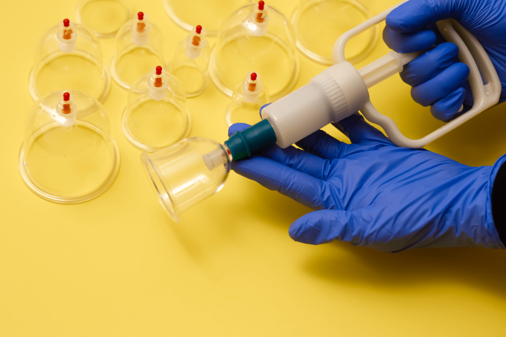 Is sometimes referred to as Fixed Cupping, is a method whereby a vacuum is created between the cups and the skin using a suction pump. The cups are applied and left on the skin for the required amount of time needed for best benefit.